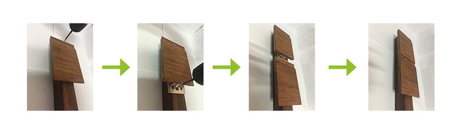 3. Van boven naar beneden tot aan de tweede wandplaat, zolang de te installeren wandplaatzijde in lijn ligt met een wandplaatgroef, pas de strakheid aan en bevestig deze aan de onderkant met bevestigingsmiddelen;